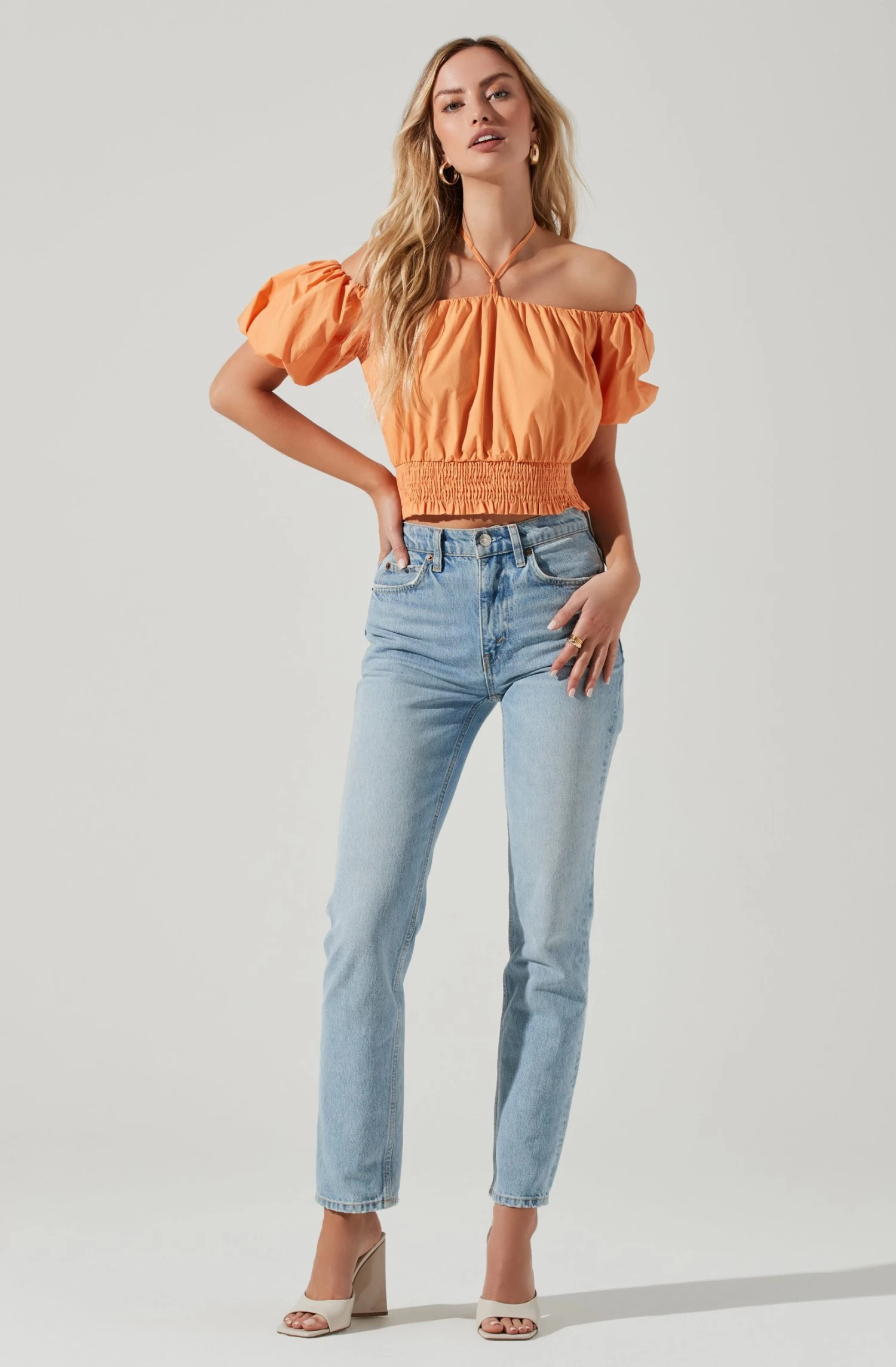 Aldrin Halter Neck Off Shoulder Puff Sleeve Top