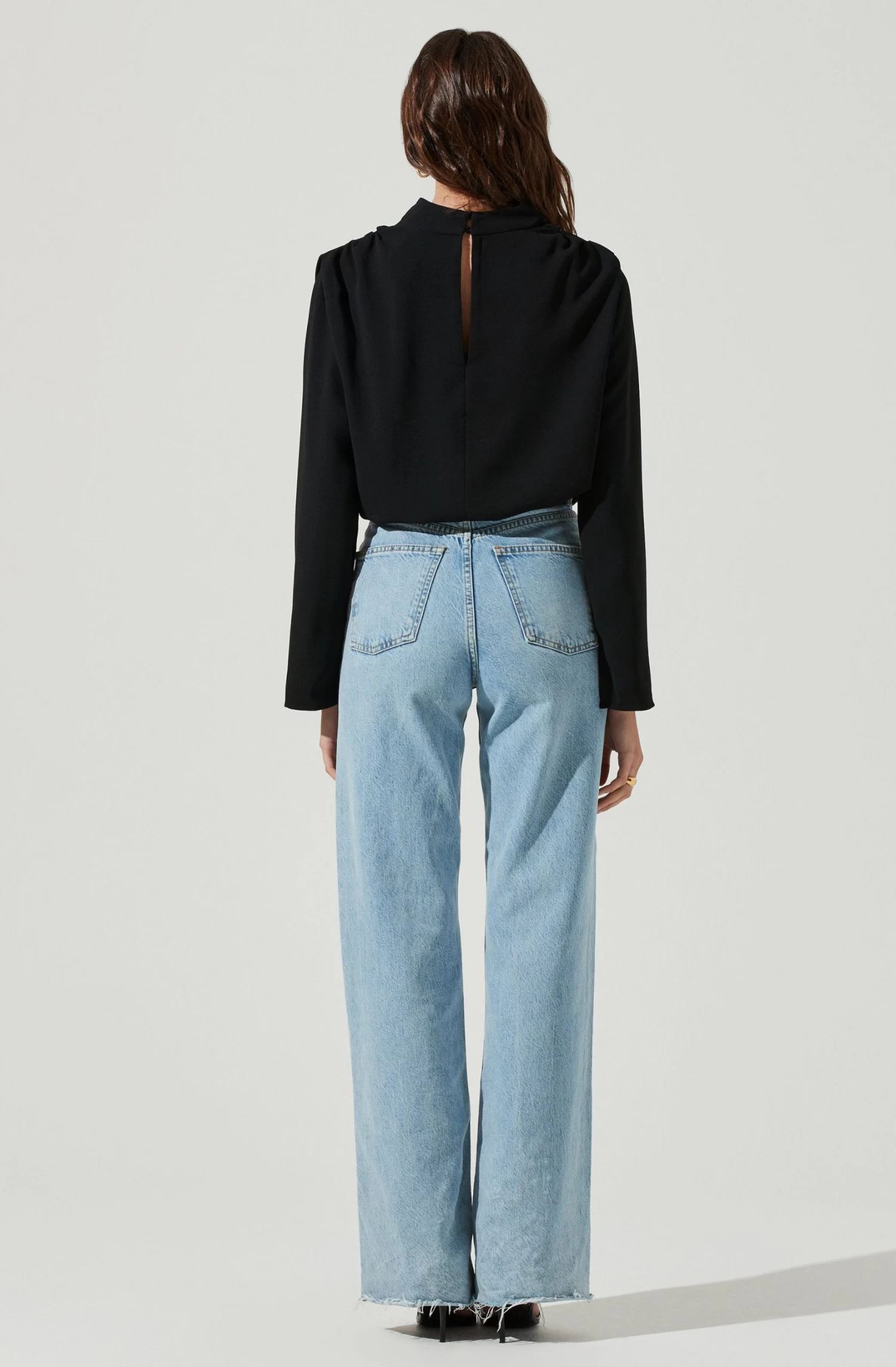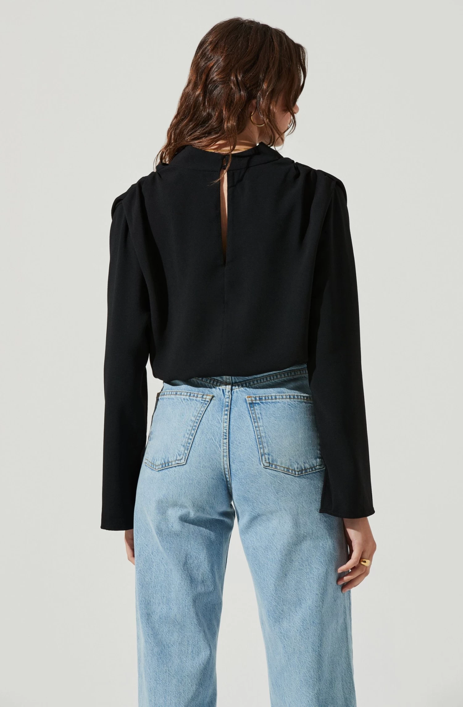Sophisticated or casual, the Amelia Top can do it all! This versatile top features a mock neck collar that leads to a relaxed silhouette. Long sleeves with V slits at the wrist.