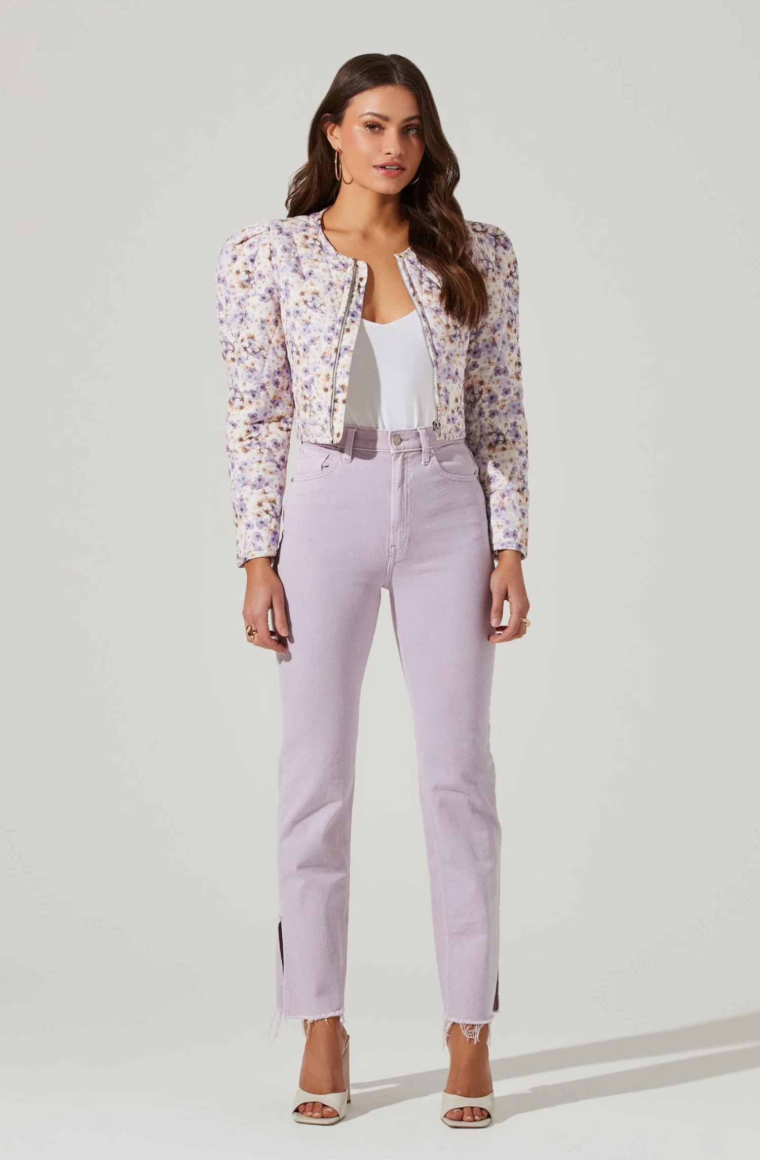 Brea Floral Quilted Cropped Puff Sleeve Jacket