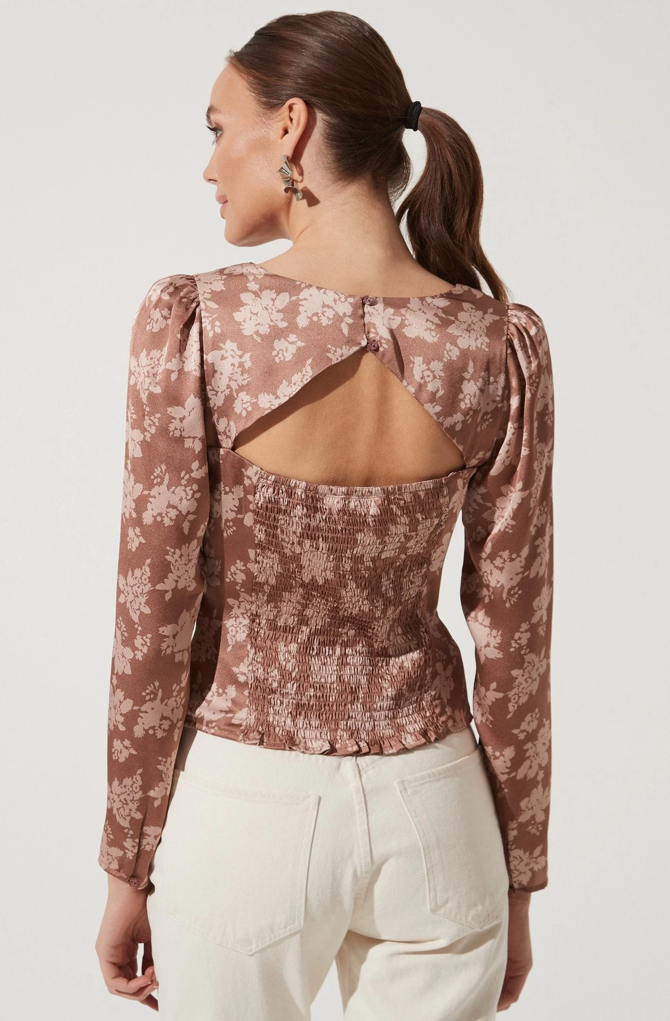 Floral Long Sleeve Back Cutout Top