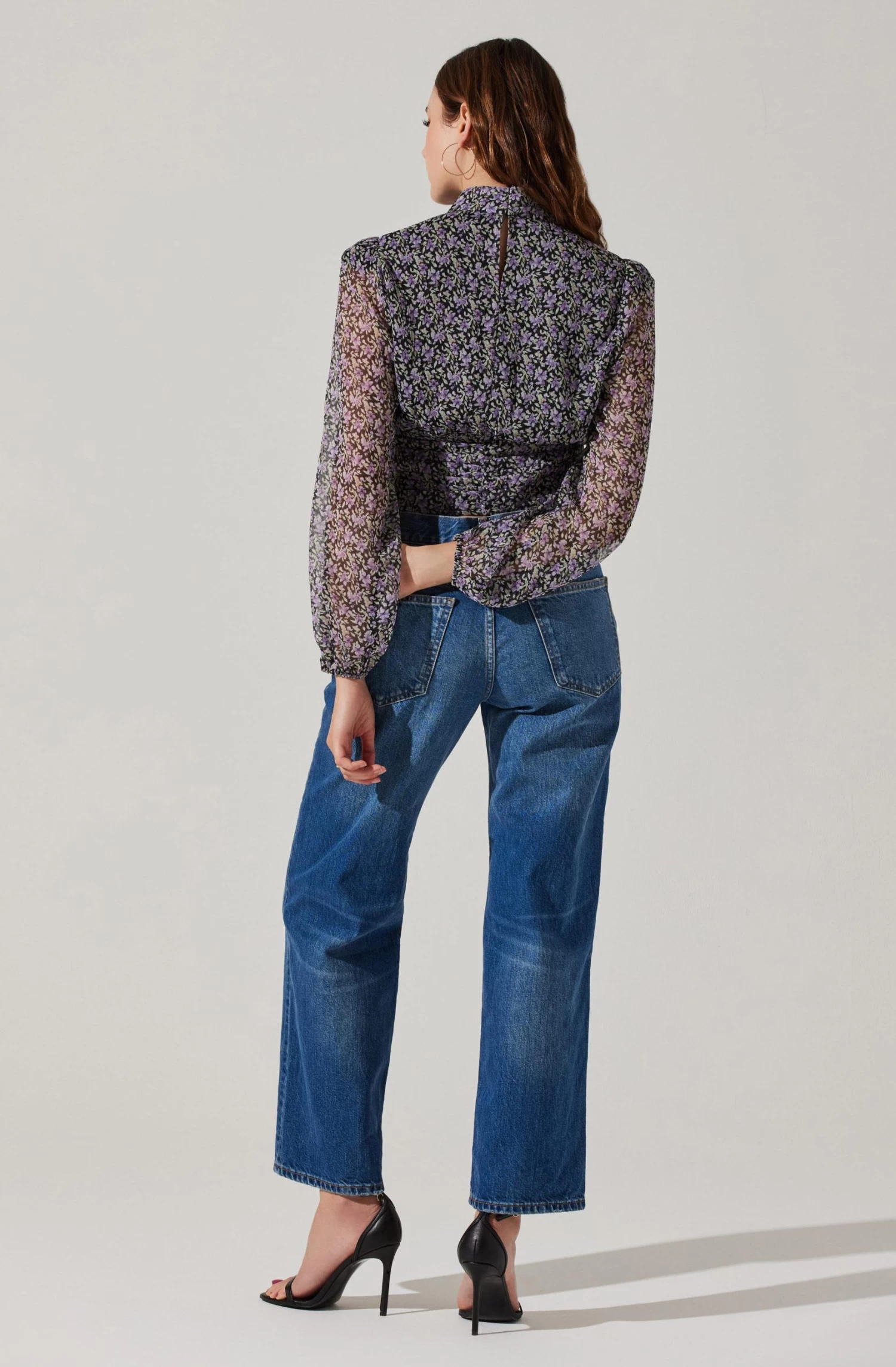 Floral Puff Sleeve Mock Neck Top