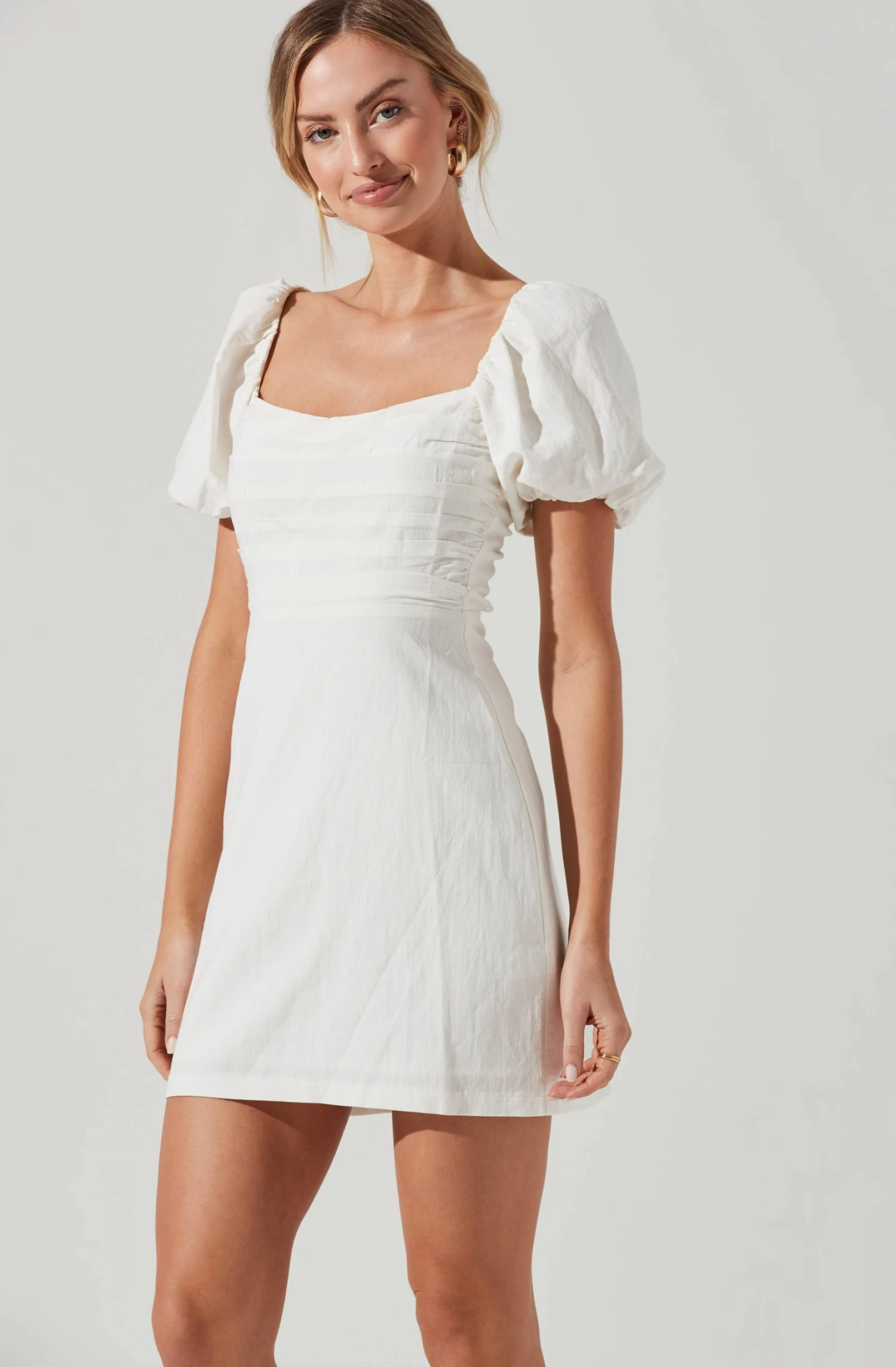 Linen Pleat Front Mini Dress