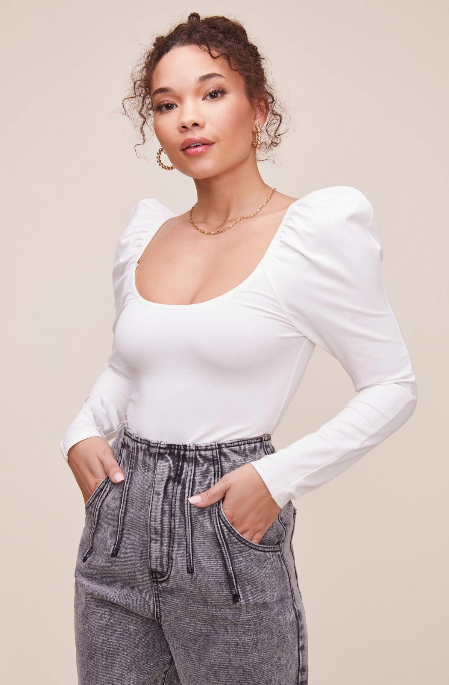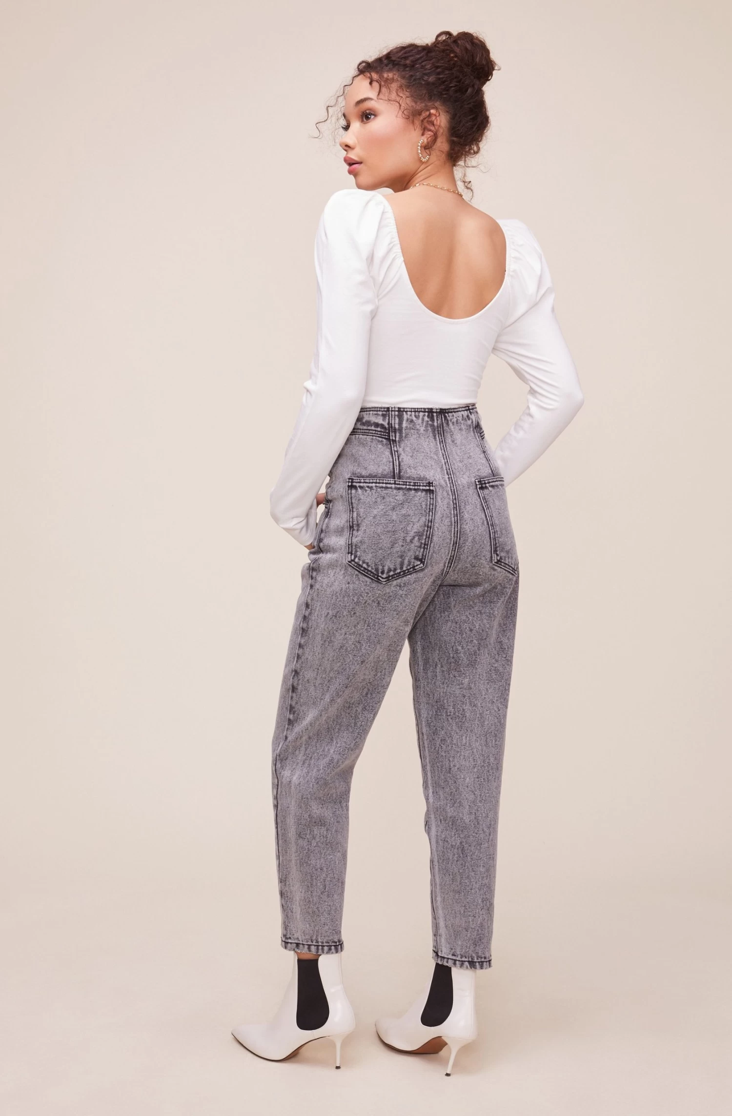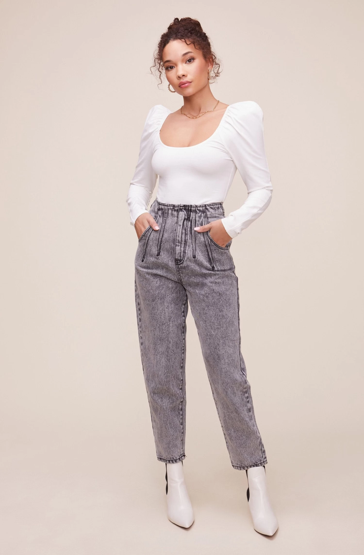 These are the jeans of your dreams! They feature a flattering high waist that leads to a pleated front and four pocket construction. Slim leg silhouette.