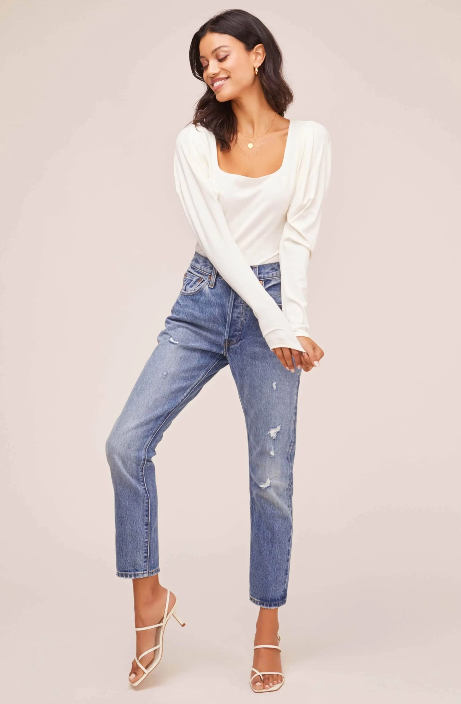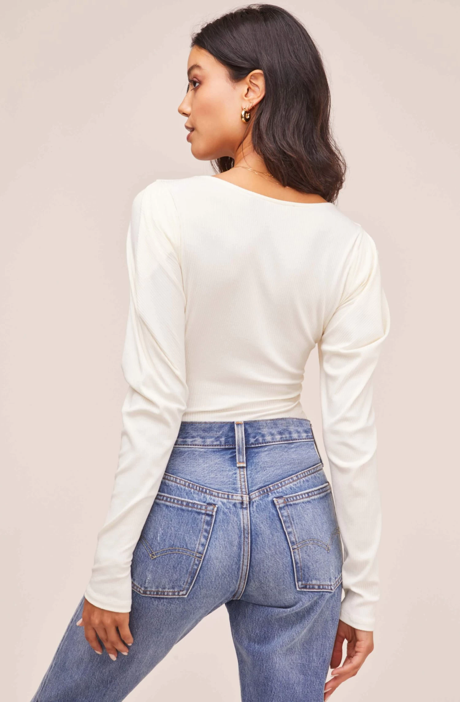 Match up this bodysuit with a flowy skirt or your favorite jeans! This versatile style features a flattering square neckline and long sleeves with puff shoulders.