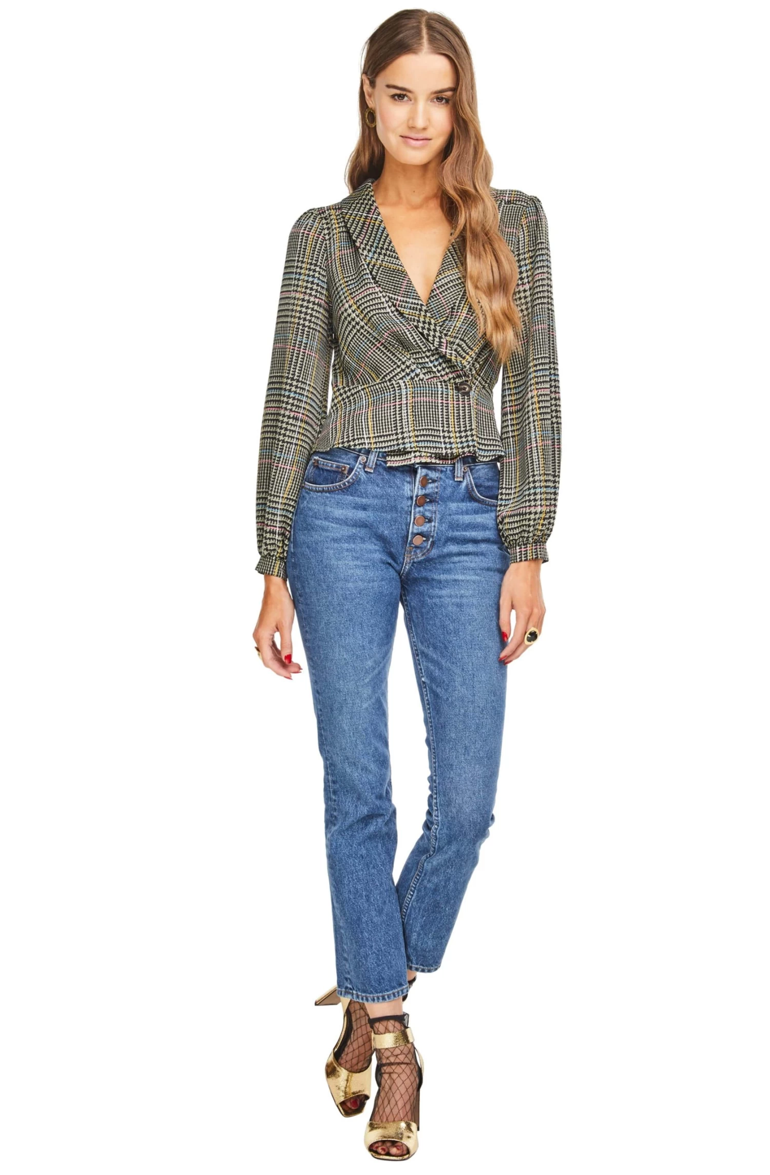 100% Polyester, Length: 21 5/8″ (Size M), Tie and Button Closure, Dry Clean Only, Plaid blouse, Surplice, Cinched, Model is Wearing Size S, Model’s Measurements: Height 5’10” // Bust 34″ // Waist 24″ // Hips 34″, Fits True to Size, Style#ACT13920