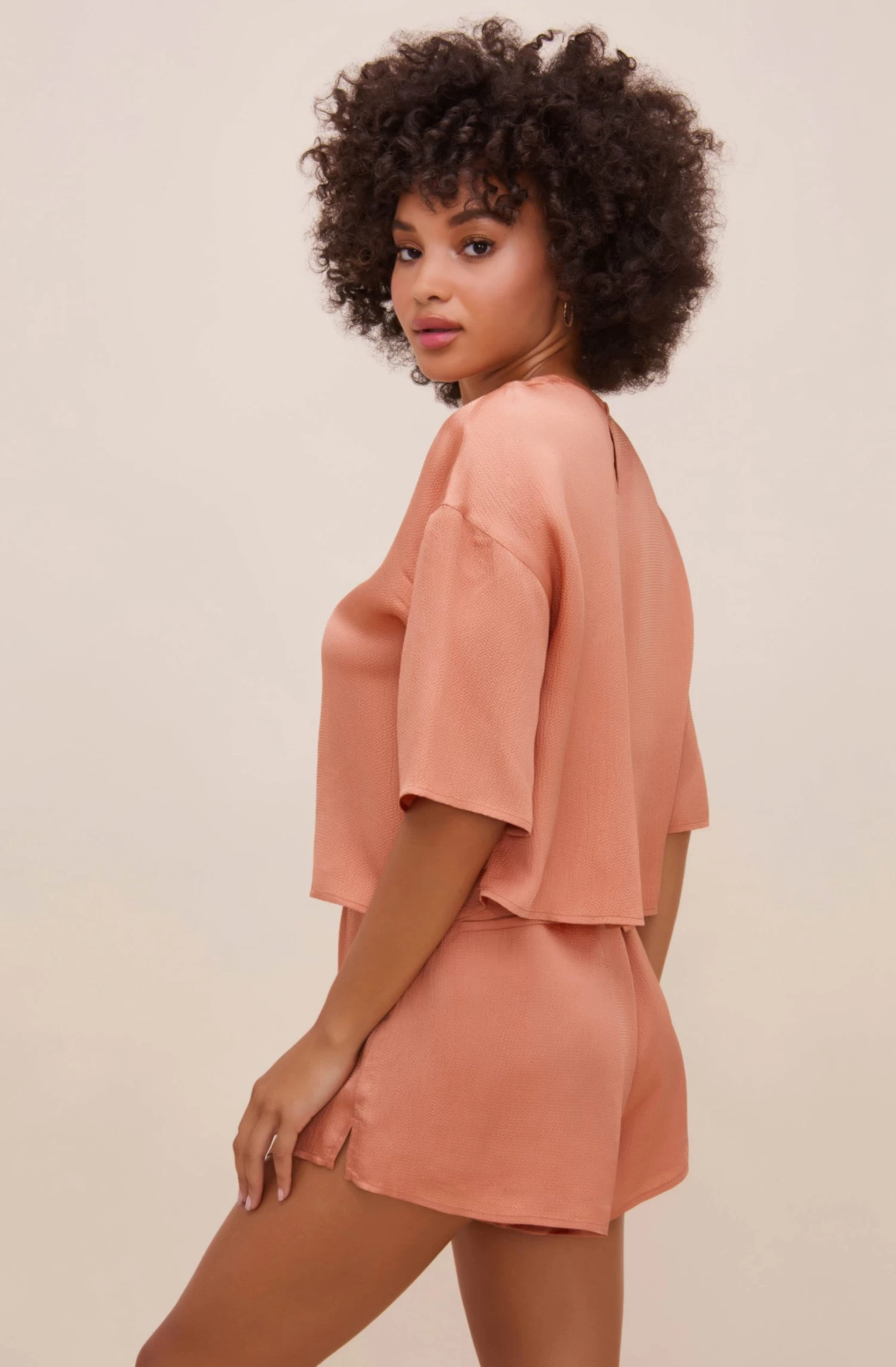 Luxe loungewear is key! The Rosabel Shorts features a drawstring waist with a soft satin fabrication.